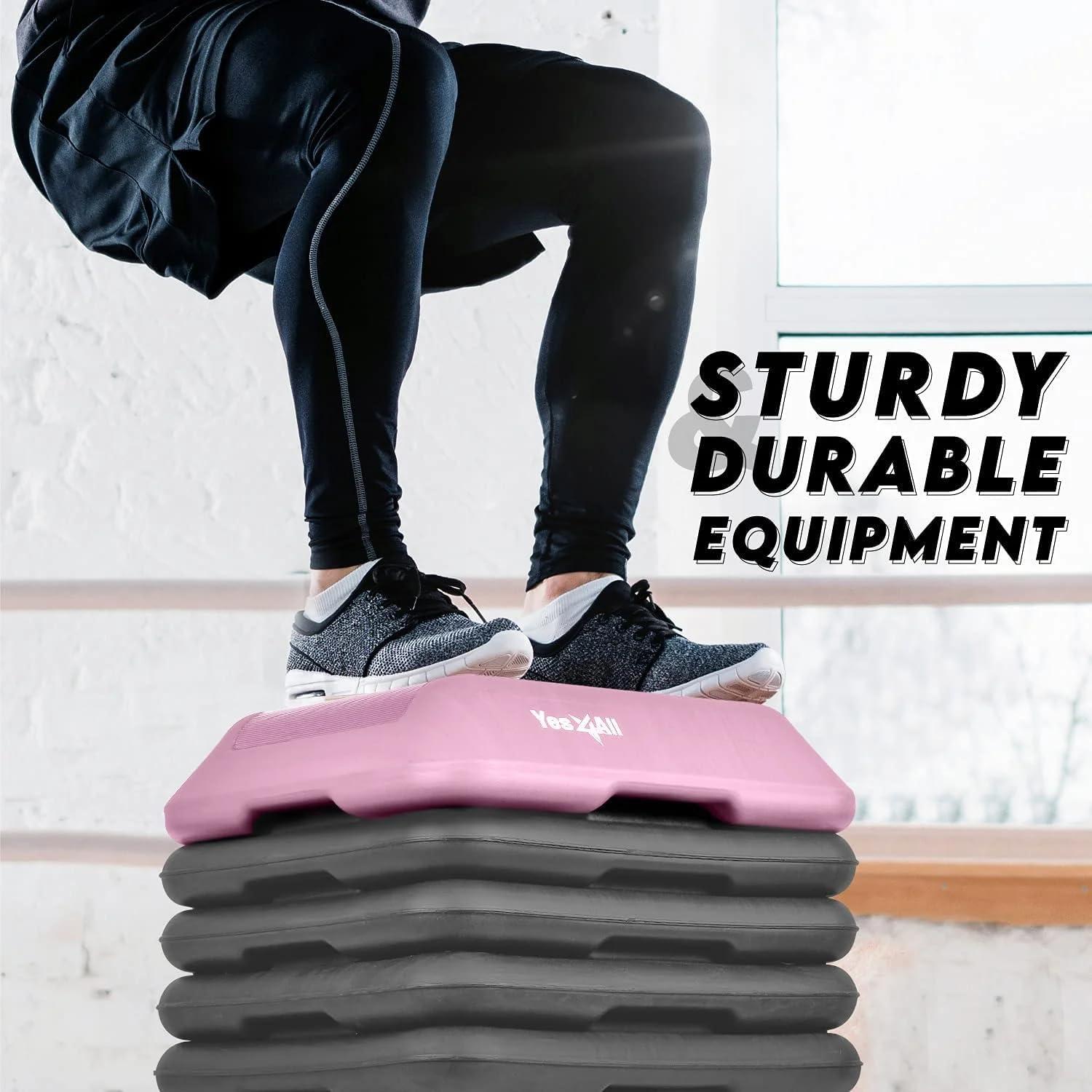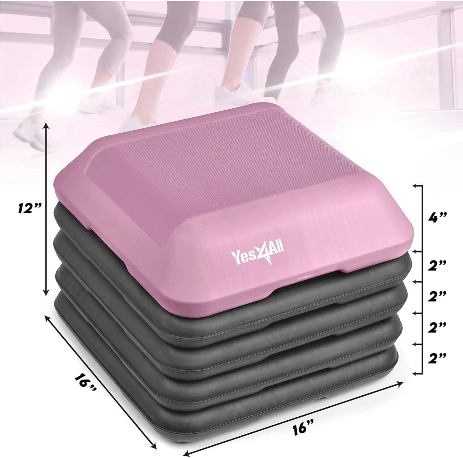 Yes4All 16″x16″ Adjustable High Step Aerobic Platform with 4 Risers, Height-Adjustable 4″-6”-8”-10”-12″ Step Aerobics Platform for Home Gym Exercise Fitness Workout