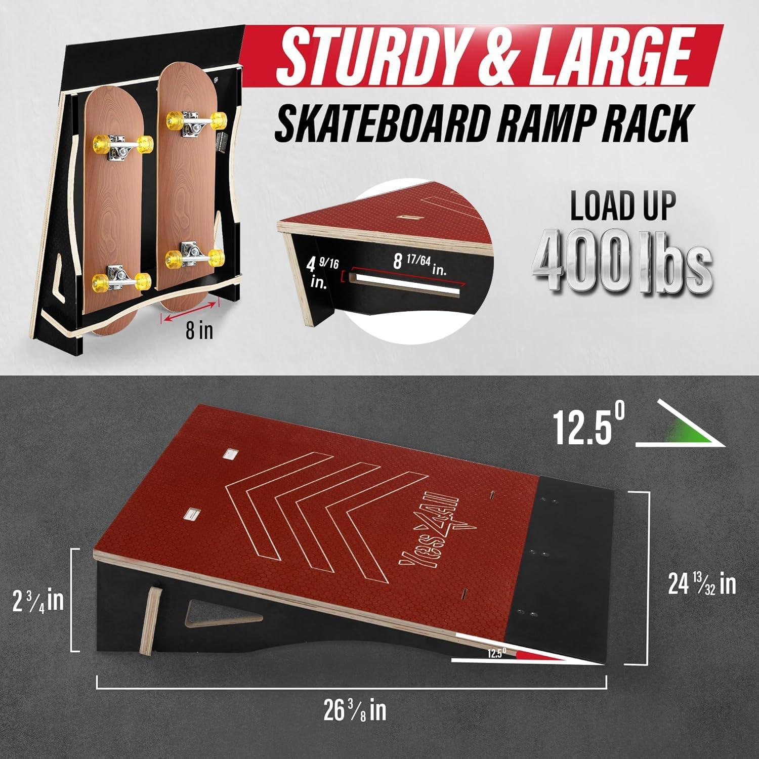 Yes4All Single-Piece Skateboard Ramp, Bike Ramp, Skate Ramp – Design for Beginners, More Durable, Safe, Capacity 220Lbs(A. Skateboard Ramp Rack)