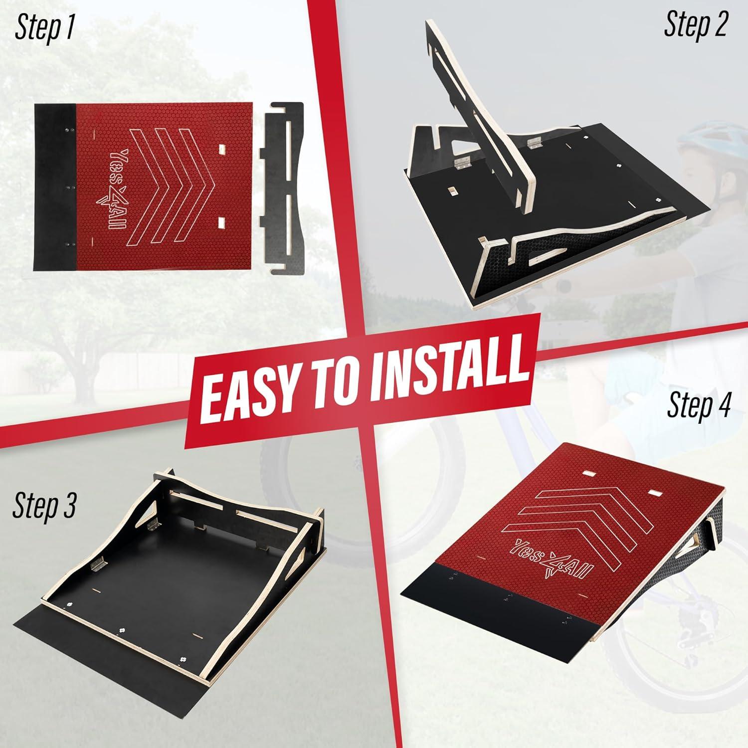 Yes4All Single-Piece Skateboard Ramp, Bike Ramp, Skate Ramp – Design for Beginners, More Durable, Safe, Capacity 220Lbs(Red)