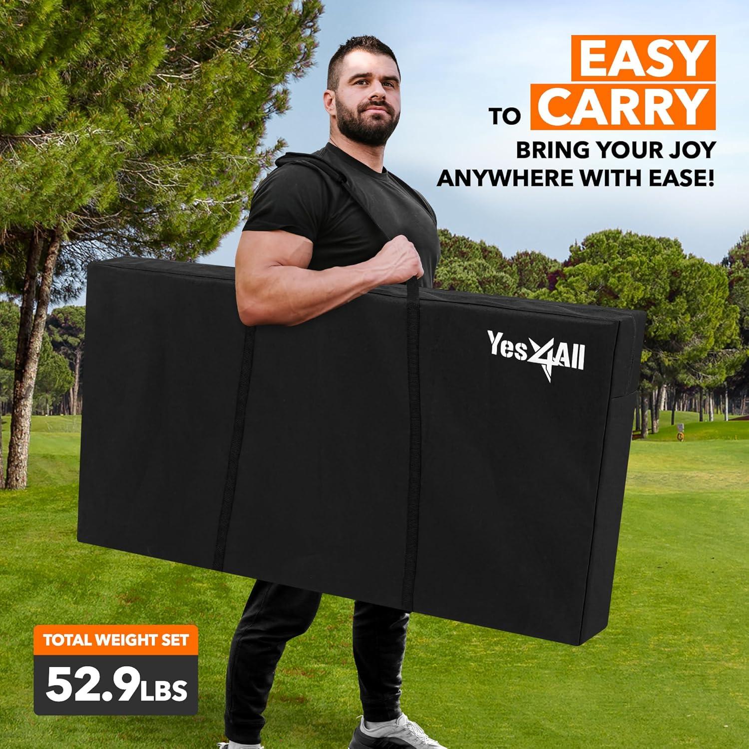 Yes4All Cornhole Board Set, 52.9 lb Tournament-Grade, Impact-Resistant Plywood Surface Cornhole Boards – Includes 1 Carry Bag, 1 Tote Bag, and 8 Double-Sided Bean Bags