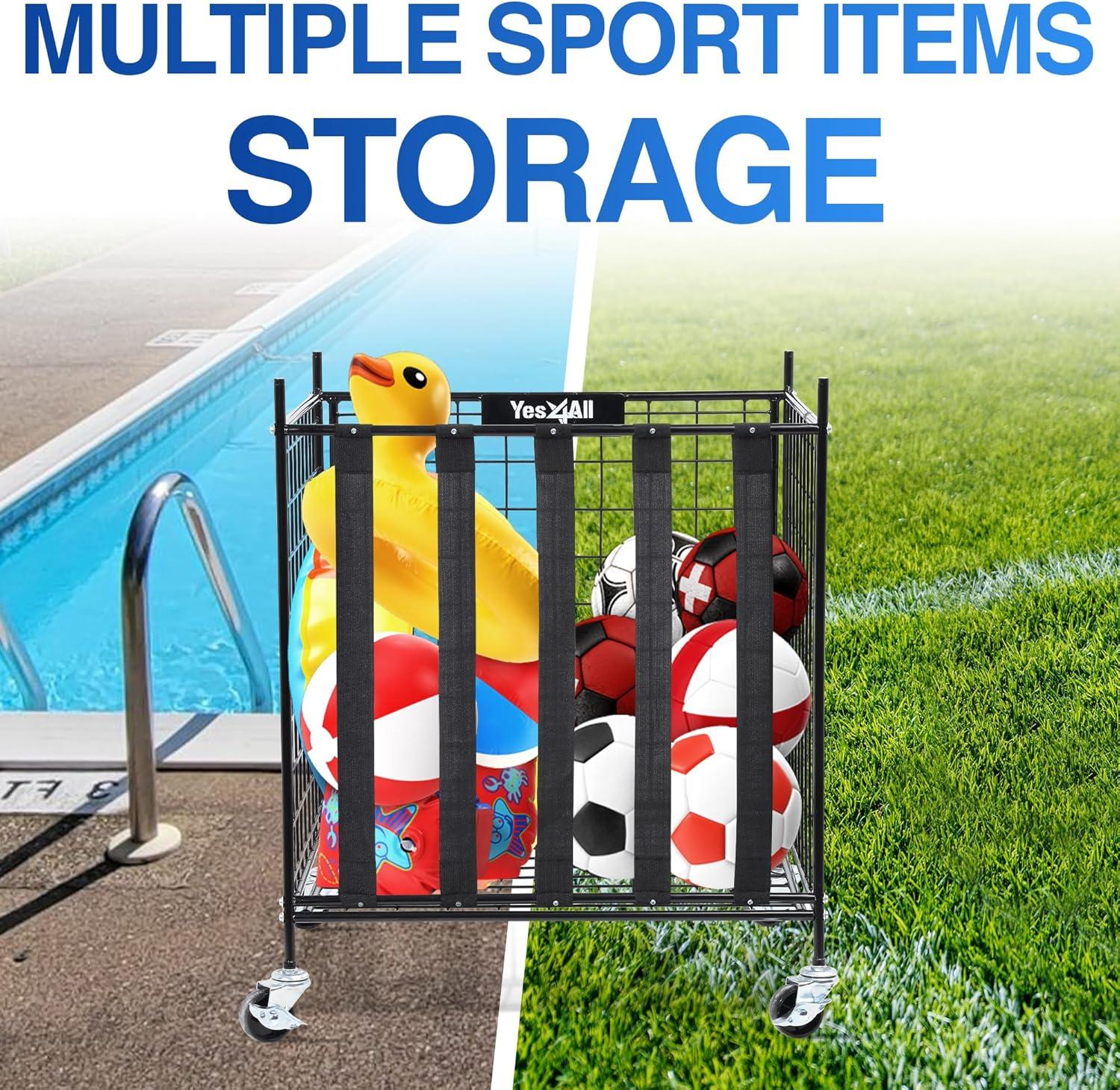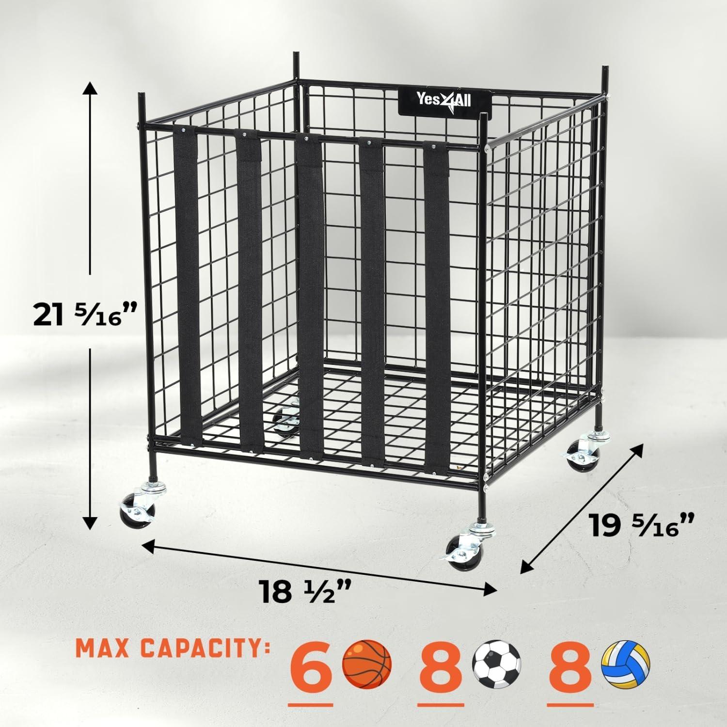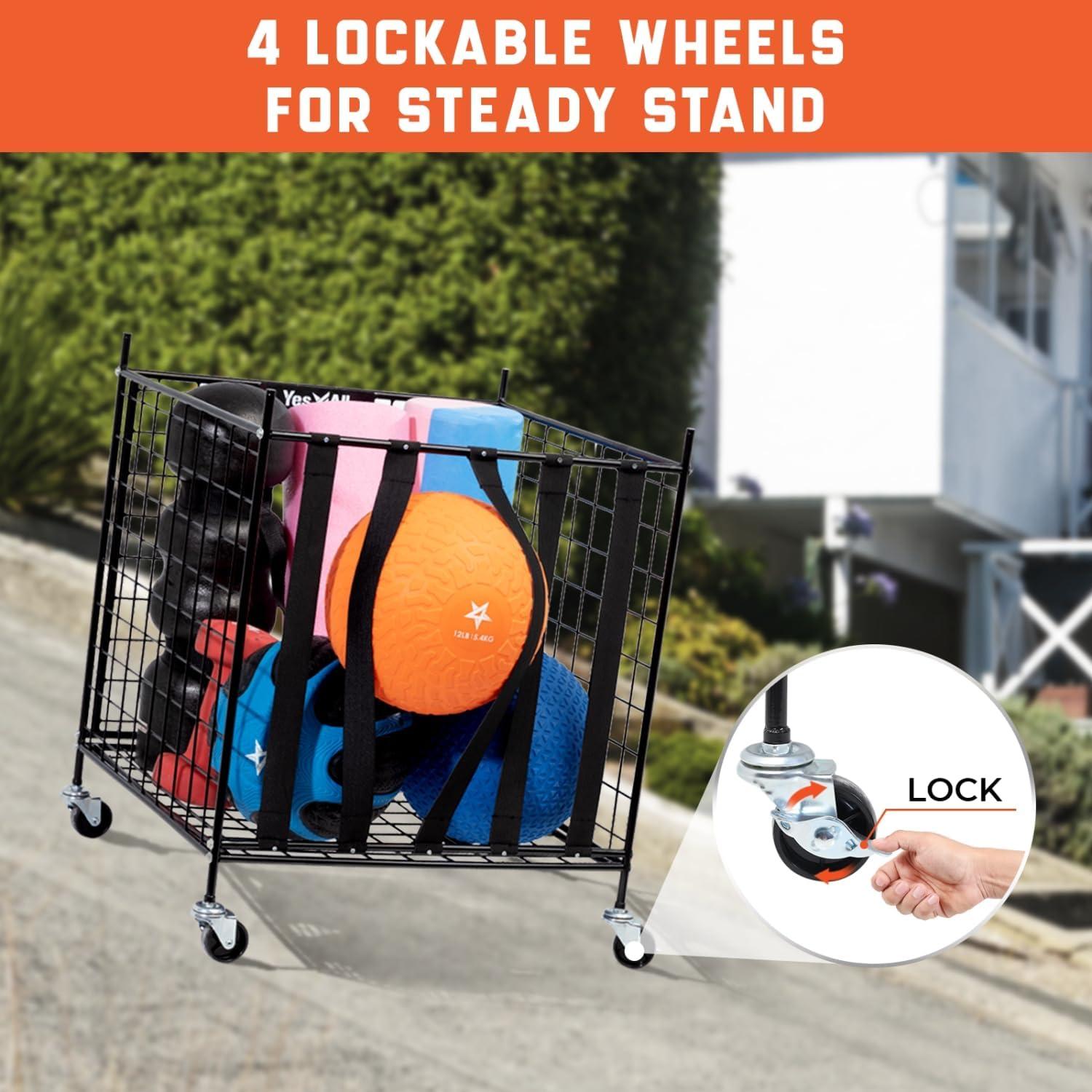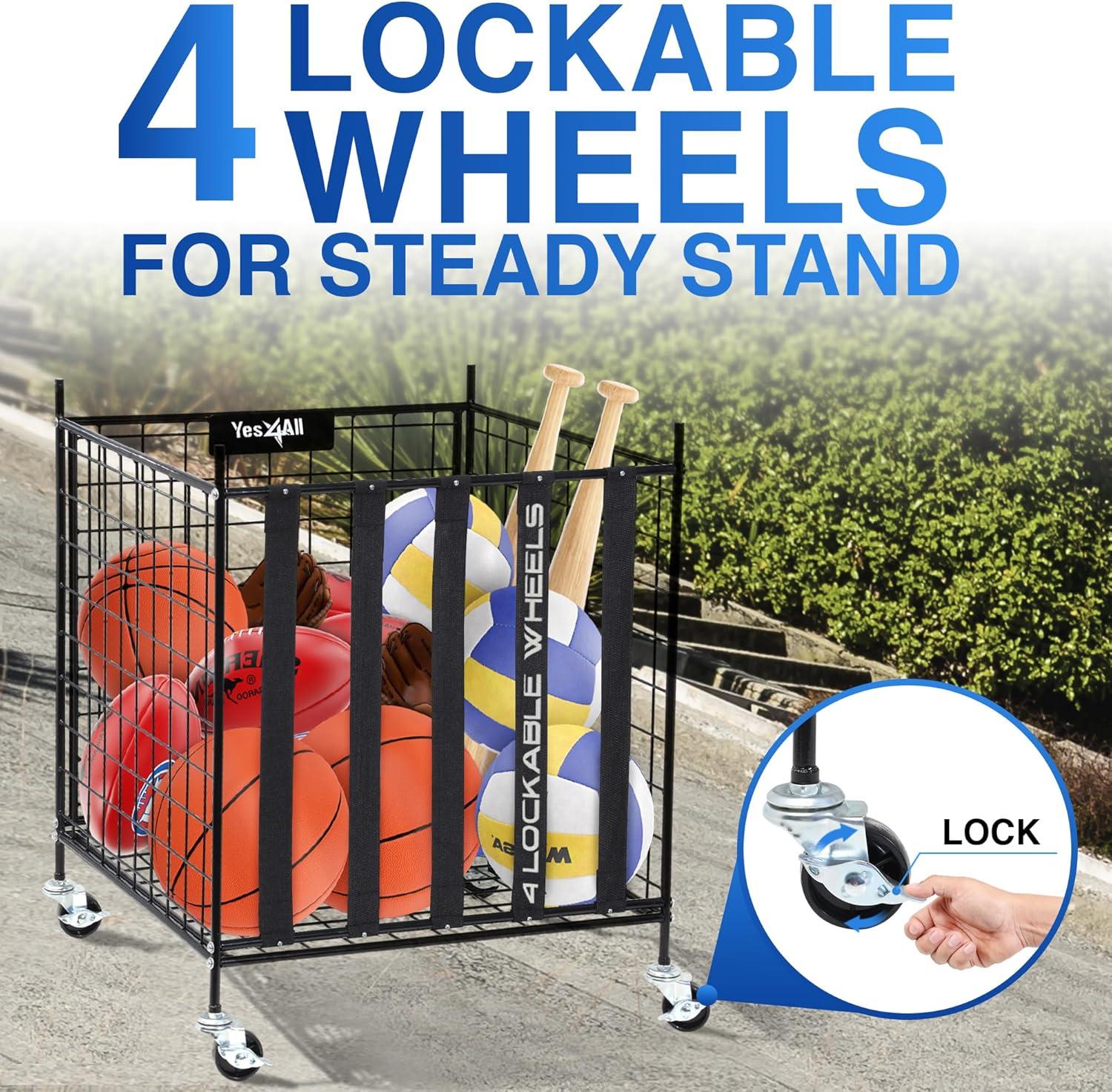YES4ALL Rolling Ball Cart Volleyball Basketball Holder, Toy Balls Bin for Garage Cage, Storage Racks with Lockable Wheels, Sports Equipment Organizer, Ball Rack for Outdoor Indoor Use
