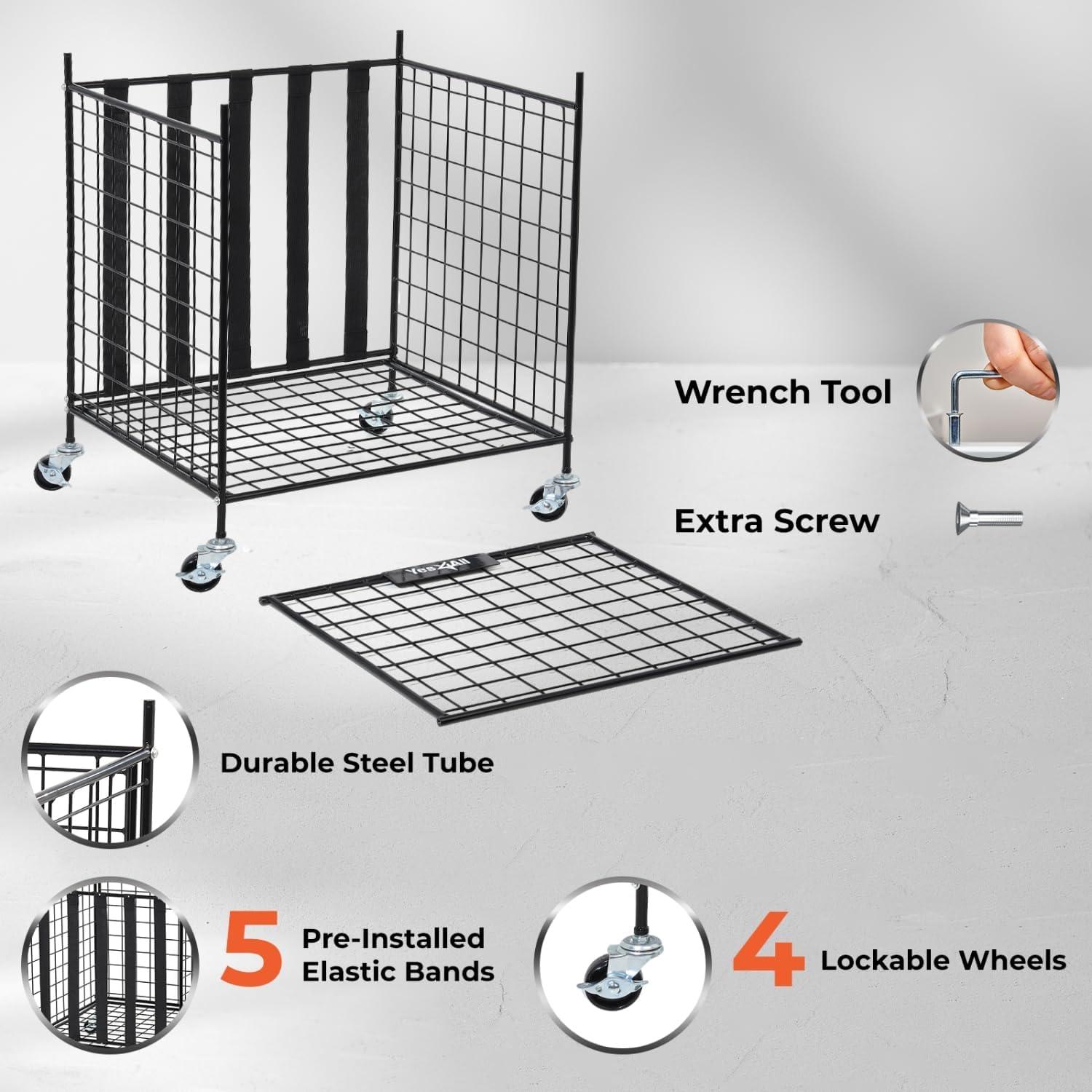 YES4ALL Rolling Ball Cart Storage with Lockable Wheels Volleyball Basketball Holder, Toy Balls Bin, Garage Cage, Storage Racks, Sports Equipment Organizer, Ball Rack for Outdoor Indoor Use(Ball Storage)