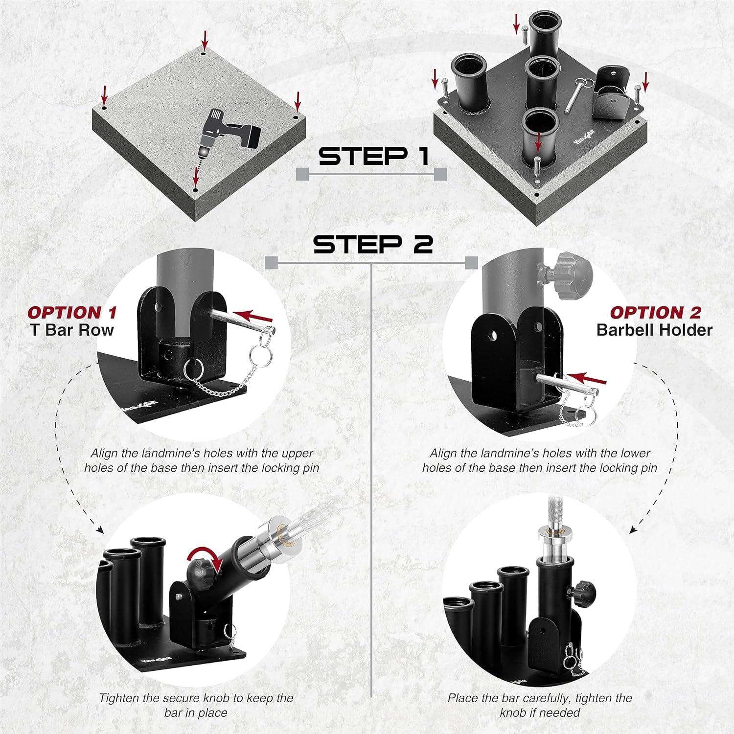 Yes4All 2-IN-1 220lbs Barbell Holder with T-Bar Row Platform 1-Inch Adapter, Barbell Stand Holder with Landmine Base for Rack