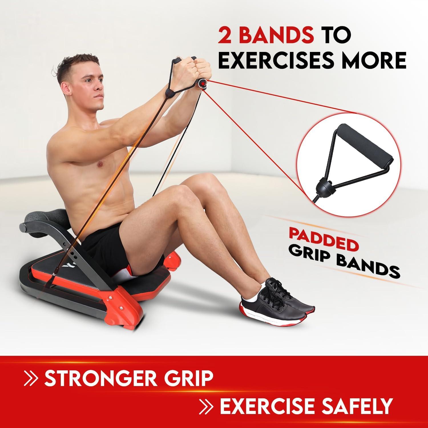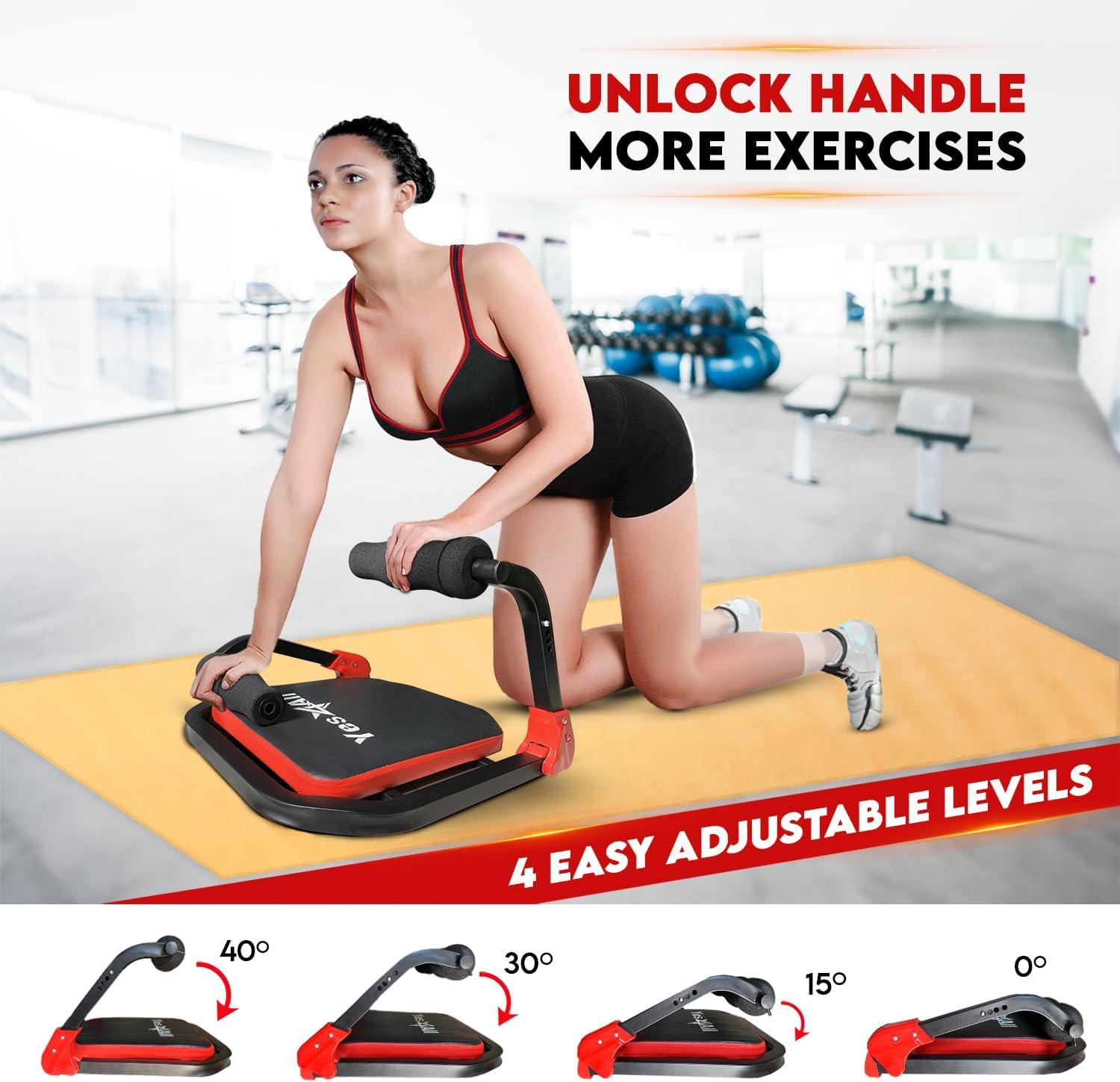 Yes4All Ab Crunch Machine – Lockable Ergonomic Foam Handle With Resistance Bands, Maximum Capacity 330 Lbs, Sit Up Exercise Equipment, Total Body Workout Machine Red, Black