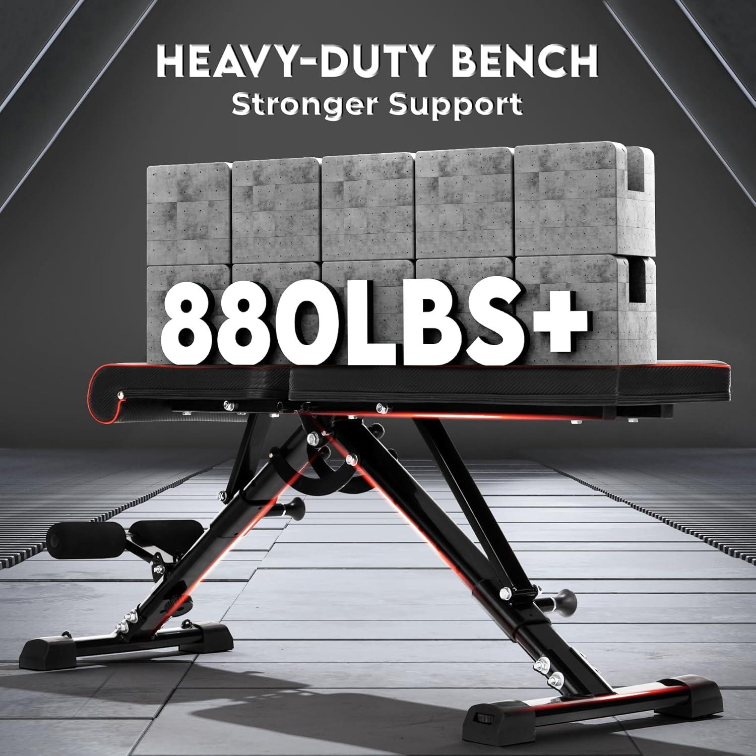 Yes4All Adjustable Weight Bench, Sturdy 880Lb Foldable Workout Bench for Home Gym for Strength Training with 1 Pair of Bands(Black)