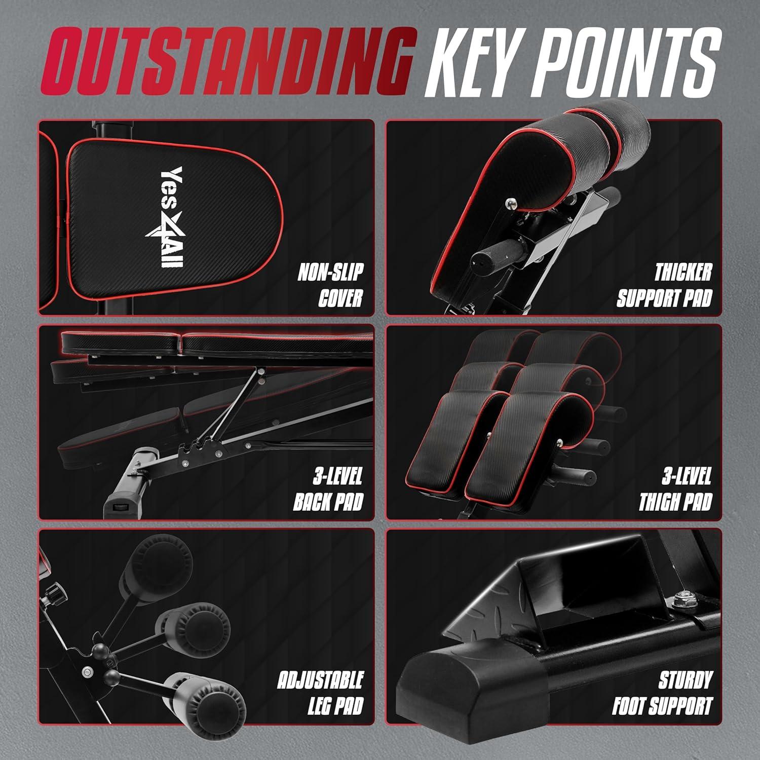 Yes4All Multi-Functional Workout Bench, Sit Up Bench, Weight Bench, Roman Chair & Back Extension for Core Training