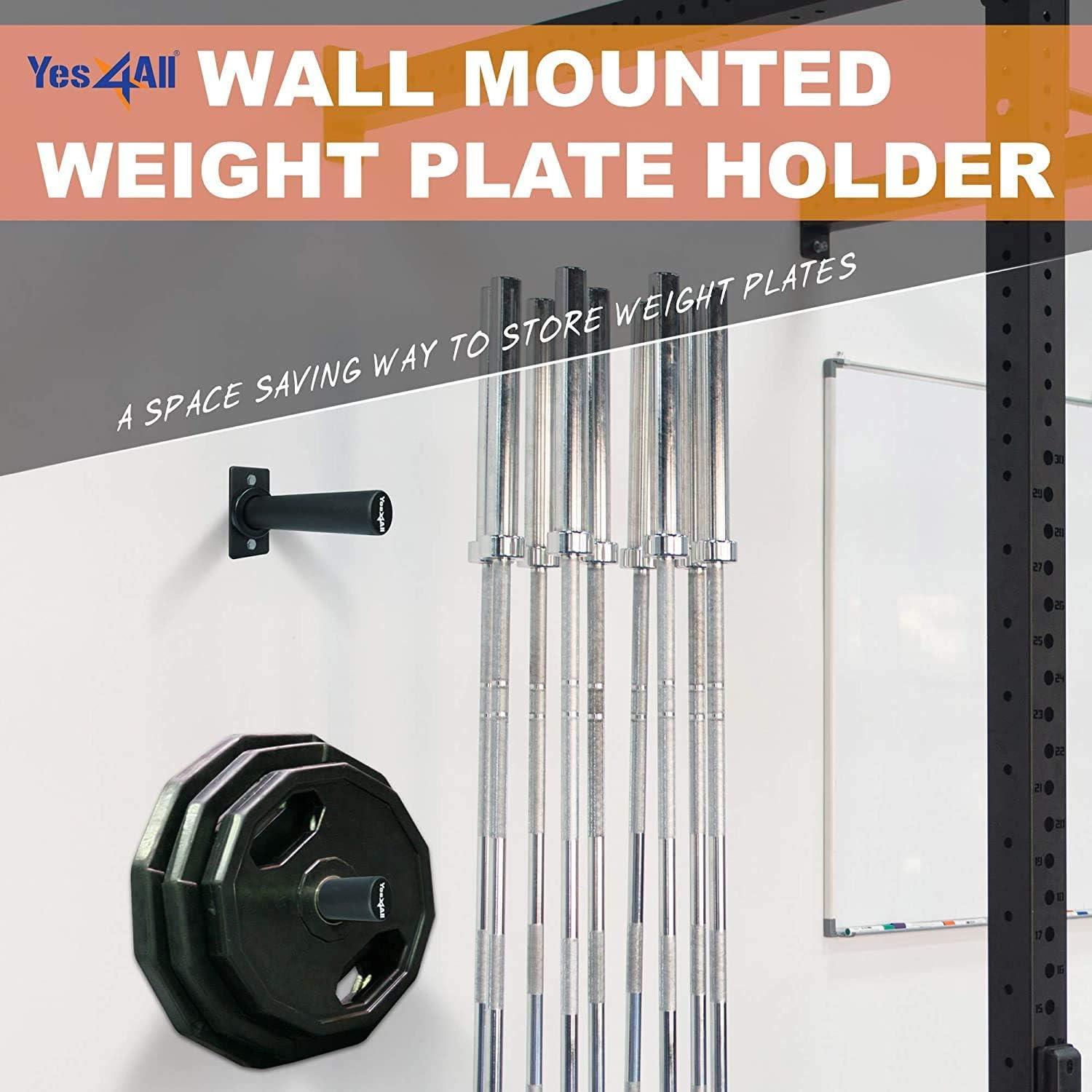 Yes4All Wall Mounted Olympic Barbell Holder & Weight Plate Storage Rack