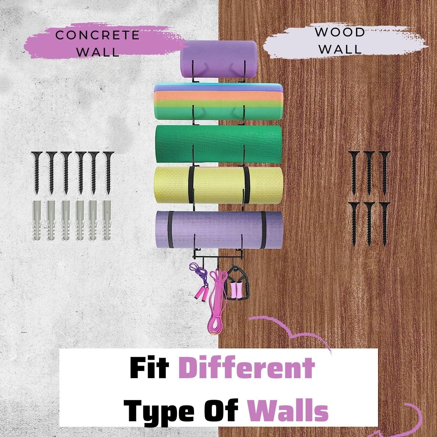 Yes4All 3-Tier and 5-Tier Steel Yoga Mat Rack Organizer Wall Mount with 3 Hooks, Foam Roller Holder Wall Mount Rack For Yoga Mat Storage, Hanging Yoga Strap and Resistance Bands