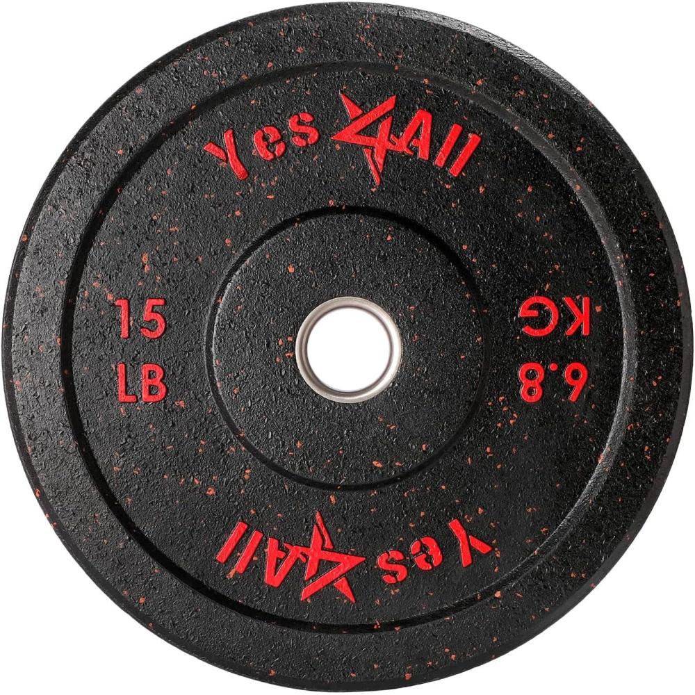 Yes4All 2″ Bumper Plate, 10-190 LB Olympic Rubber Weight Plate with Steel Hub for WeightLifting, Strength Training, Home Gym, Less Impact, Absorb Bounce & Shock, Multiple Options(15LB)