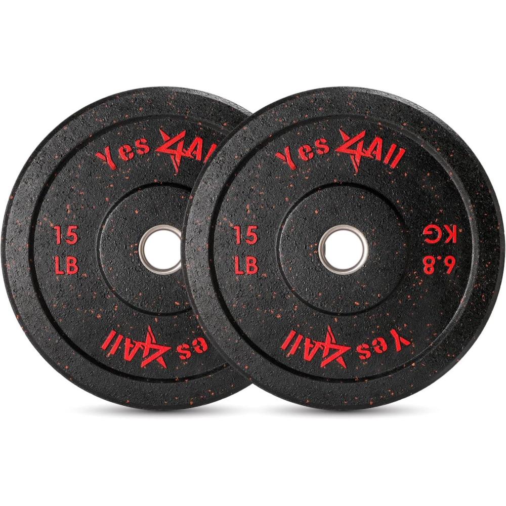 Yes4All 2″ Bumper Plate, 10-190 LB Olympic Rubber Weight Plate with Steel Hub for WeightLifting, Strength Training, Home Gym, Less Impact, Absorb Bounce & Shock, Multiple Options(2x15LB)