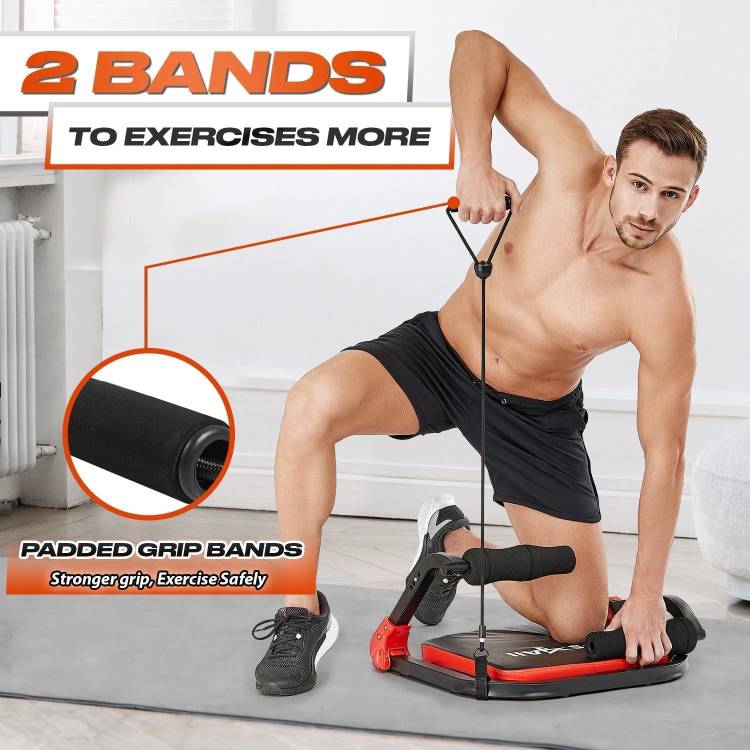 ADJUSTABLE RESISTANCE LEVELS – With 2 resistance bands included, this abdominal exercise machine allows you to customize your workout intensity based on your fitness level and goals.