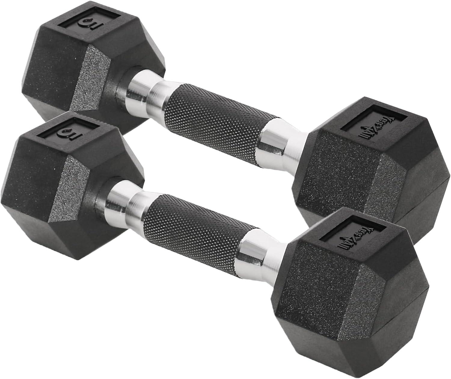 Yes4All Chrome/Rubber Grip Encased Hex Dumbbells – Hand Weights With Anti-Slip 10-30 LBS Pair(A. 05lbs – Pair)