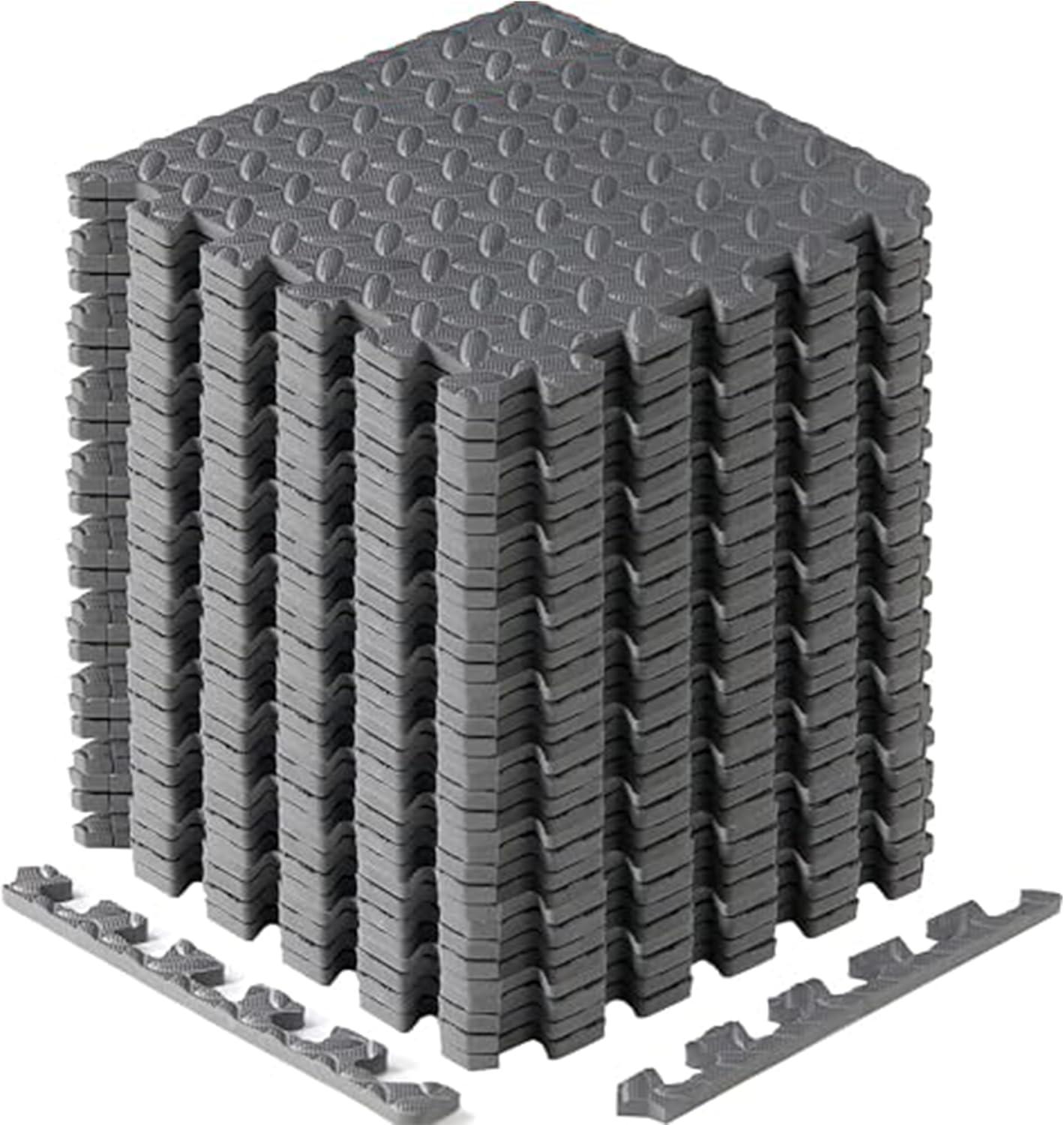 Yes4All EVA Interlocking Mats, Puzzle Floor Tiles, Foam Floor Padding with Border for Furniture, Home Space, Living Room, Garage 11,15,32,99 SQFT(Grey)
