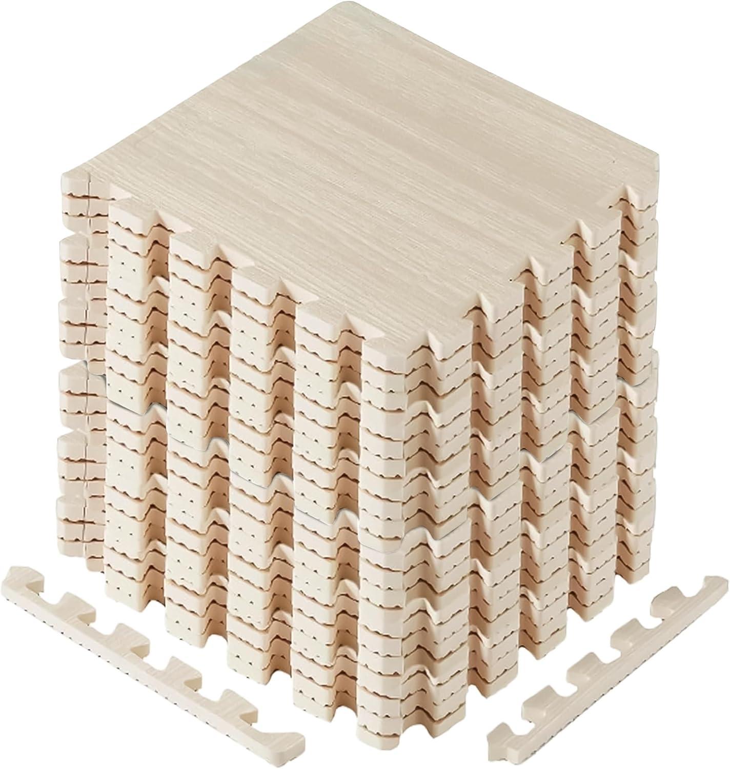 Yes4All EVA Interlocking Mats, Puzzle Floor Tiles, Foam Floor Padding with Border for Furniture, Home Space, Living Room, Garage 11,22,32 SQFT(C. Walnut Wood Light)