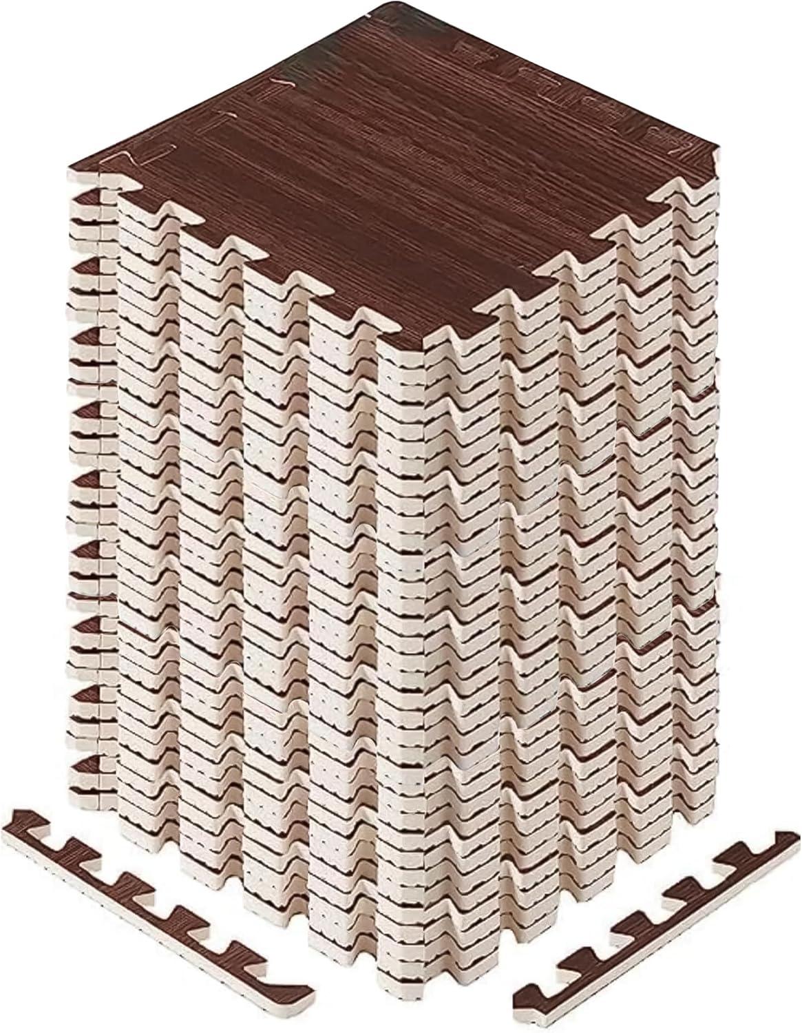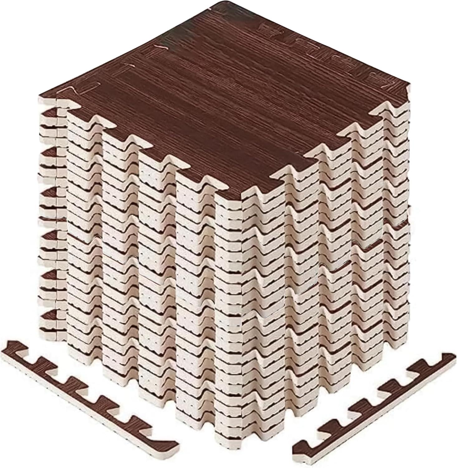 Yes4All EVA Interlocking Mats, Puzzle Floor Tiles, Foam Floor Padding with Border for Furniture, Home Space, Living Room, Garage 11,22,32 SQFT(D. Walnut Wood Dark)