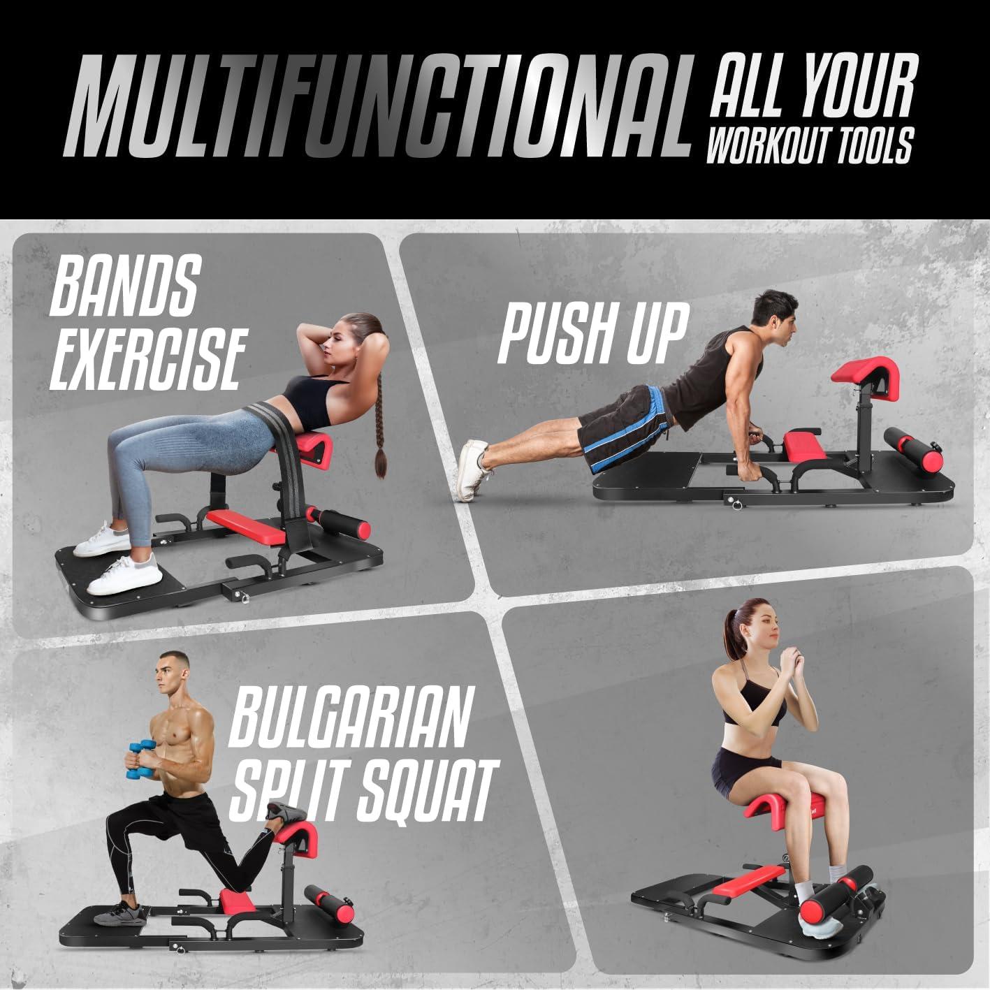Yes4All Hip Thrust Machine Including Resistance Bands, Glute Machine Sissy Squat Machine, Hip Thrust Bench for Glute Training(Red)