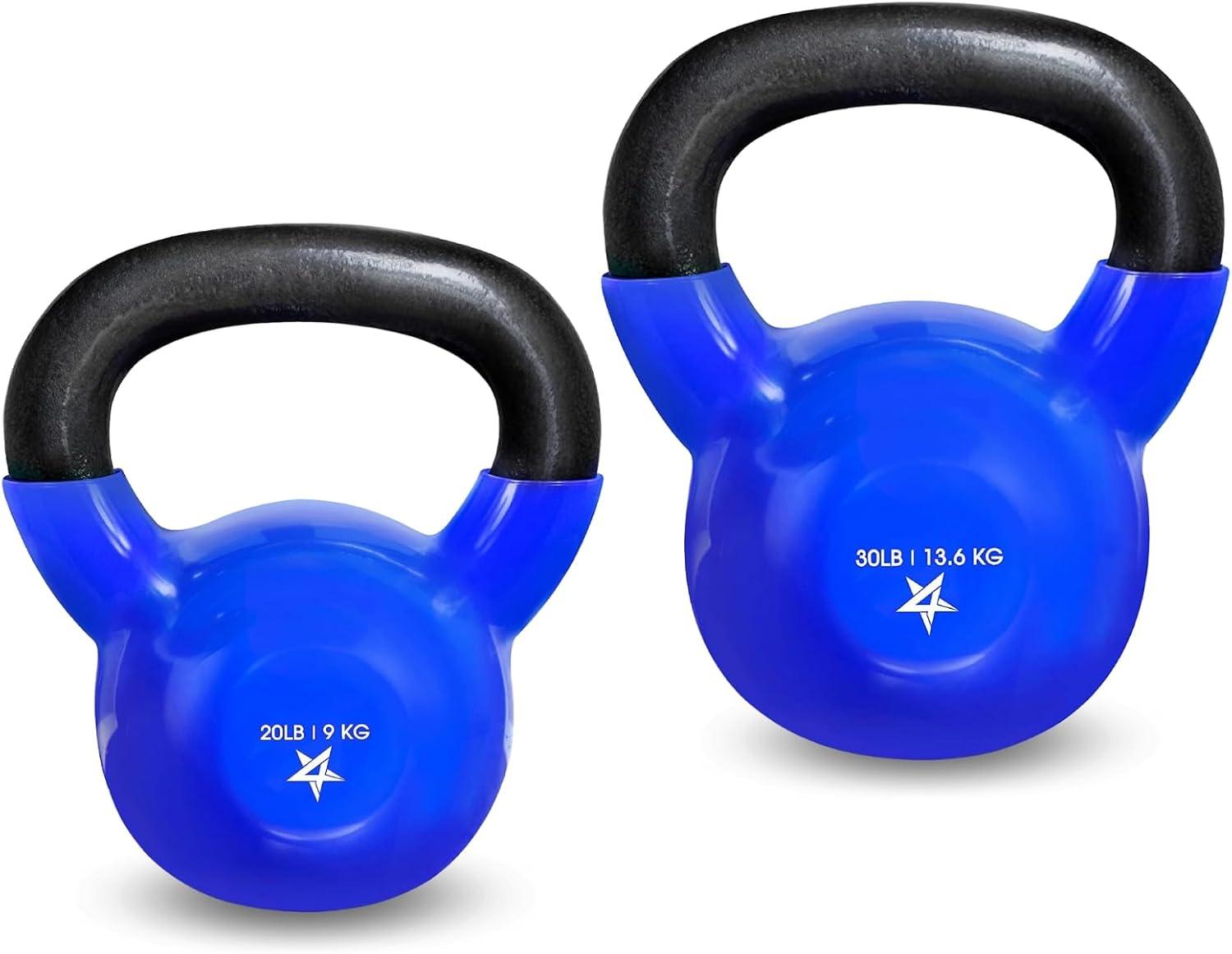 Yes4All Kettlebell, Vinyl Coated Kettlebell Cast Iron Sets with Stable Flat Bottom for Full Body Workout, Push up, Grip Strength Training & Weights Exercises(Blue)