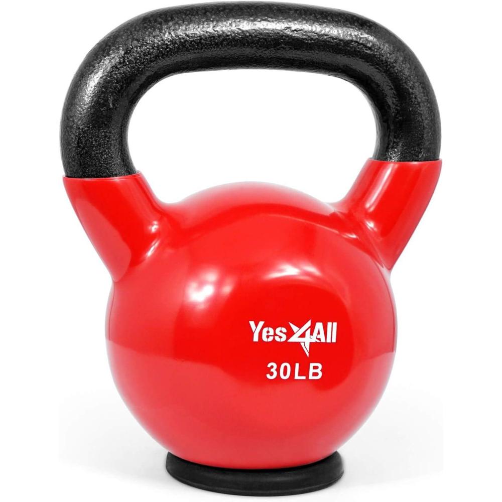 Yes4All Kettlebells Rubber Base, Kettlebell Set for Women, Strength Training Kettlebells Weights (10-65 lbs)(G. 30LB – Red)