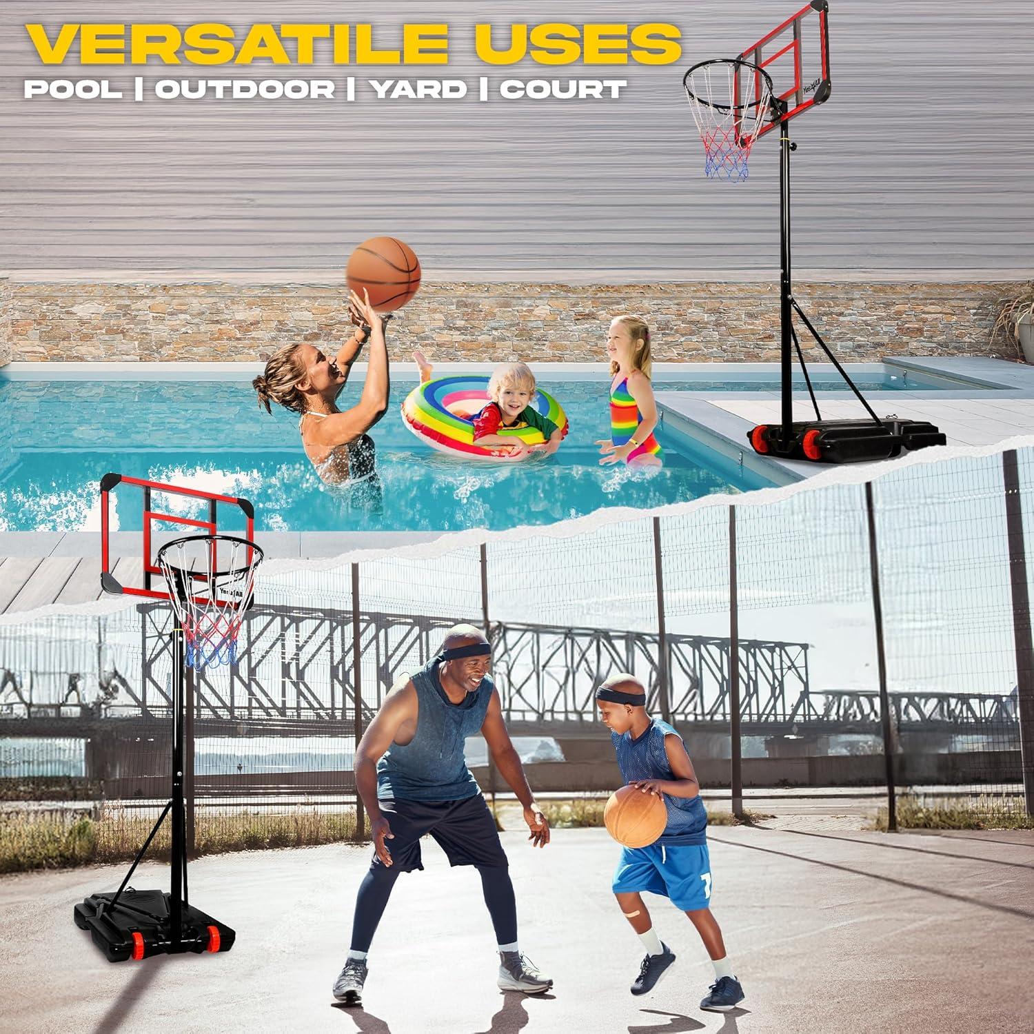 Yes4All Portable Basketball Hoop, 5.8-7ft Adjustable Height Portable Basketball Goal for Indoor, Outdoor, Pool with PC Backboard and Stable Base
